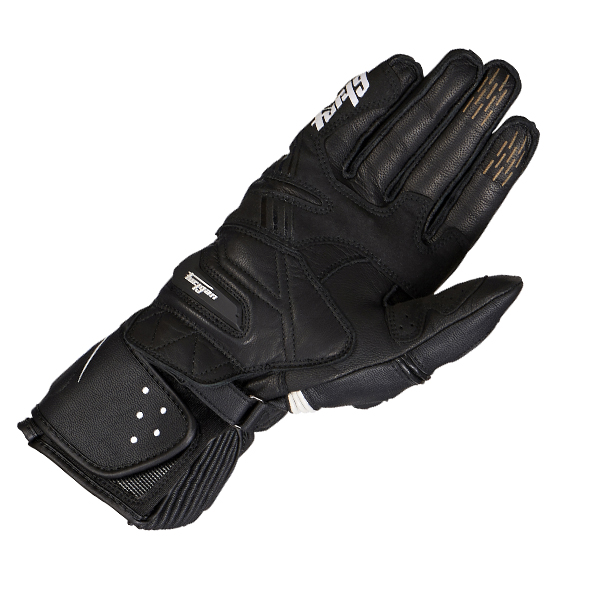 Designed with a bold style typical of Furygan, the Higgins gloves are constructed in quality goat leather and have multiple reinforcements and protective shells across the palm and metacarpals. A comfortable fit is provided thanks to its pre-shaped design, stretch insert on the wrists, and doubled cuff adjuster.