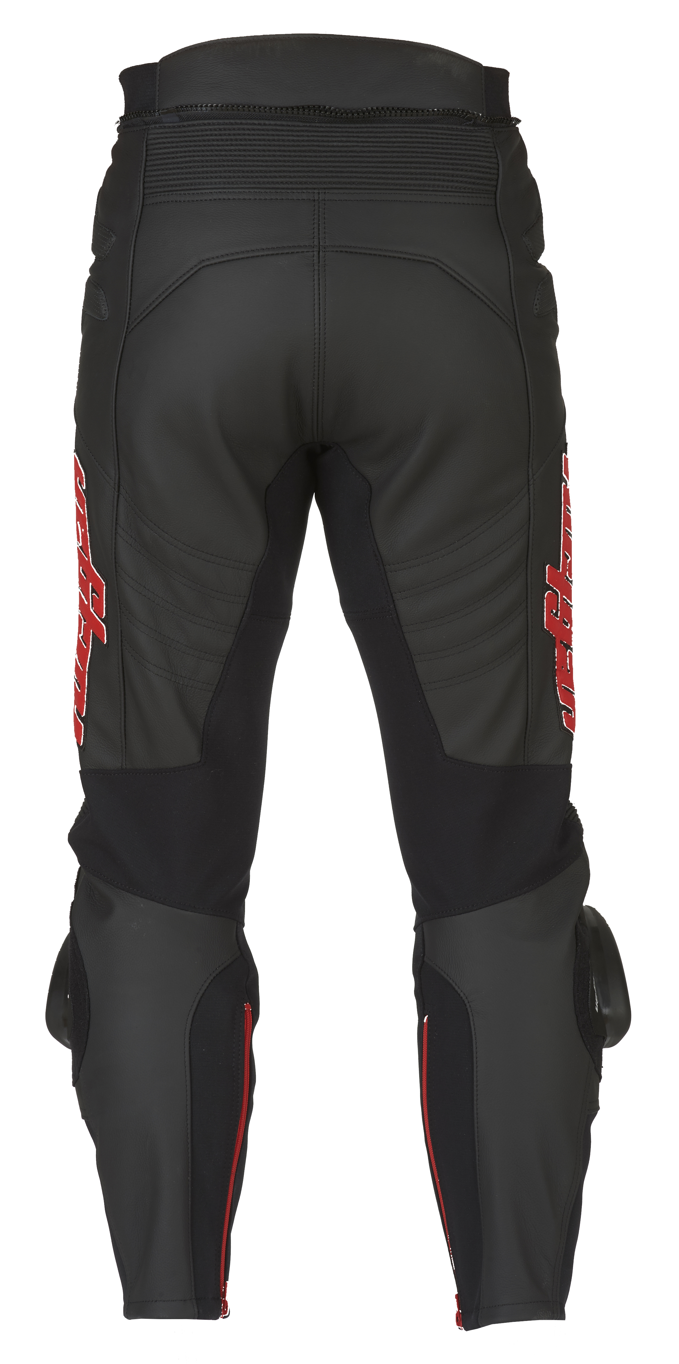 Using the same shape that is used on Furygan GP race suits, the Raptor trousers have a redesigned leg shape for optimal comfort whilst riding. They have also added bi-stretch fabric at the crotch, behind the knees and inner calf, with an elastic waistband and stretch leather at the knees for uncompromised levels of flexibility.