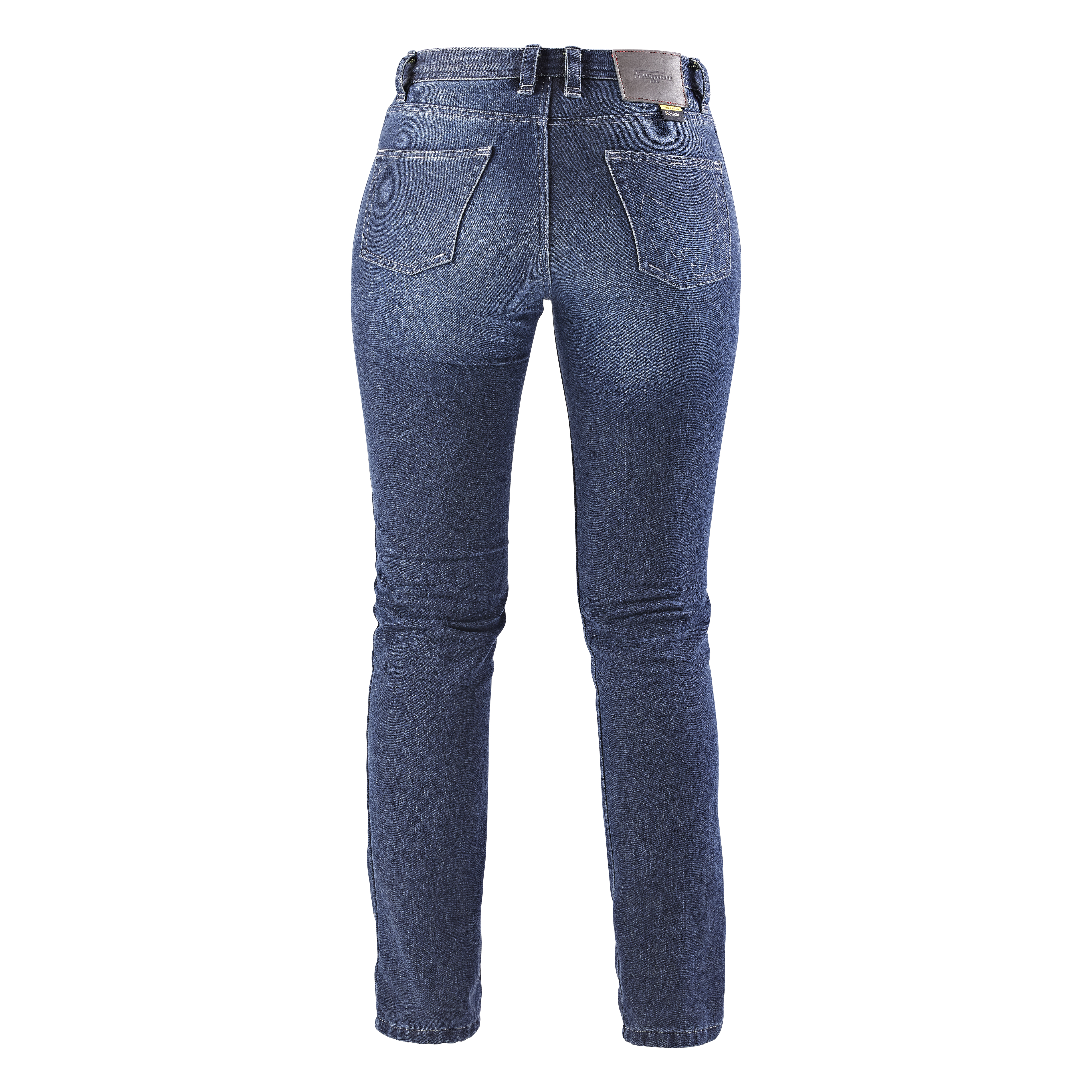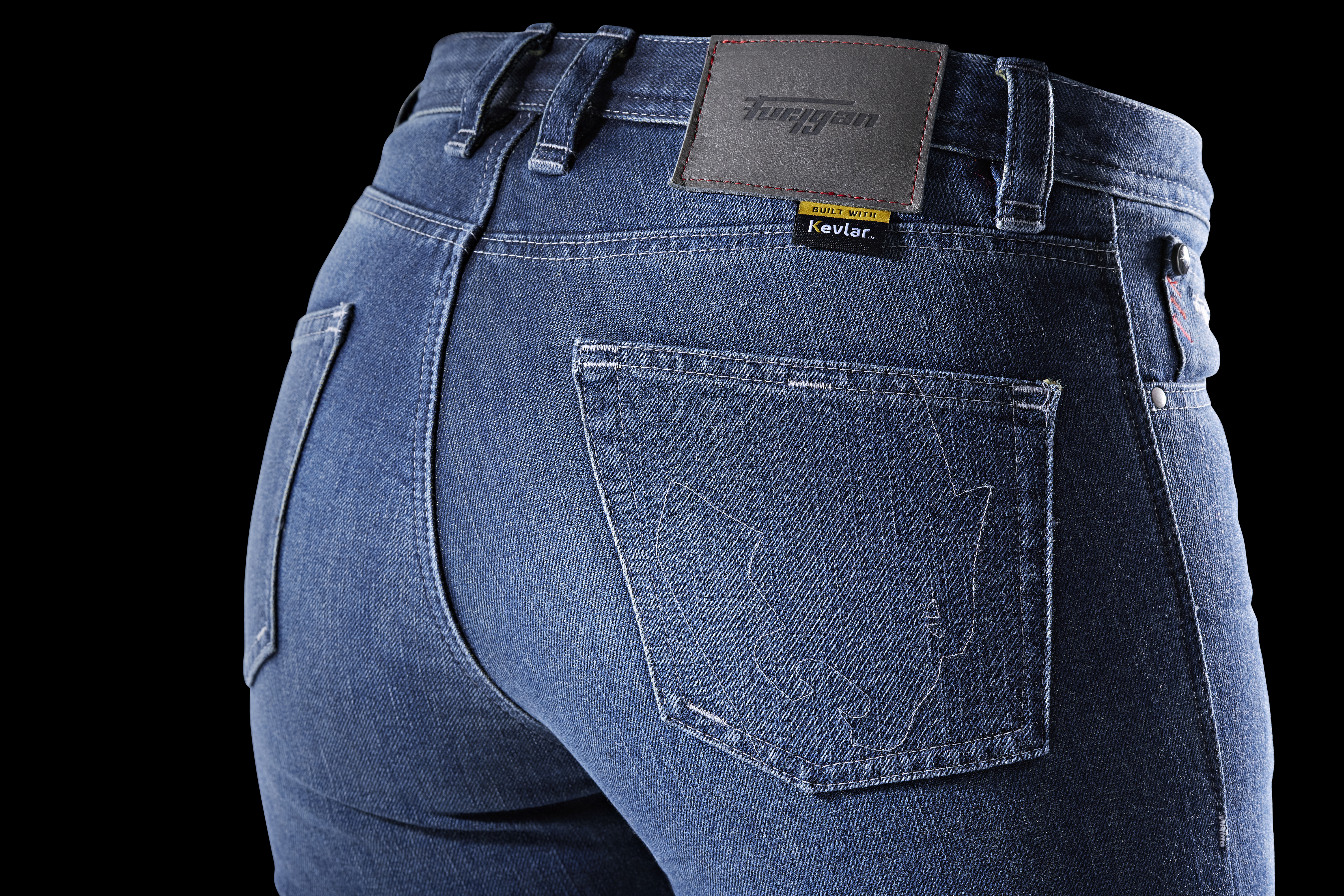For safety-conscious Ladies, the AAA certified Kate x Kevlar jeans fit the bill with a Kevlar monolayer (plus mesh lining) and new generation D3O Ghost hip and knee protectors. These jeans provide a modern straight cut silhouette with stretchable material designed to be both flattering and comfortable regardless of riding position. The knee protectors can be adjusted to suit individual preferences and these jeans feature five outside pockets.